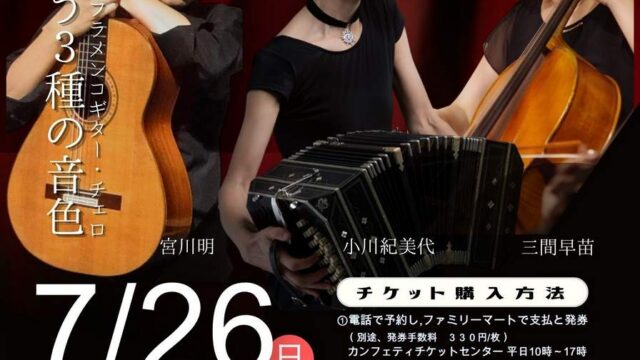 コンサート・ツアー情報 バンドネオン、フラメンコギター、チェロのコンサートのお知らせ