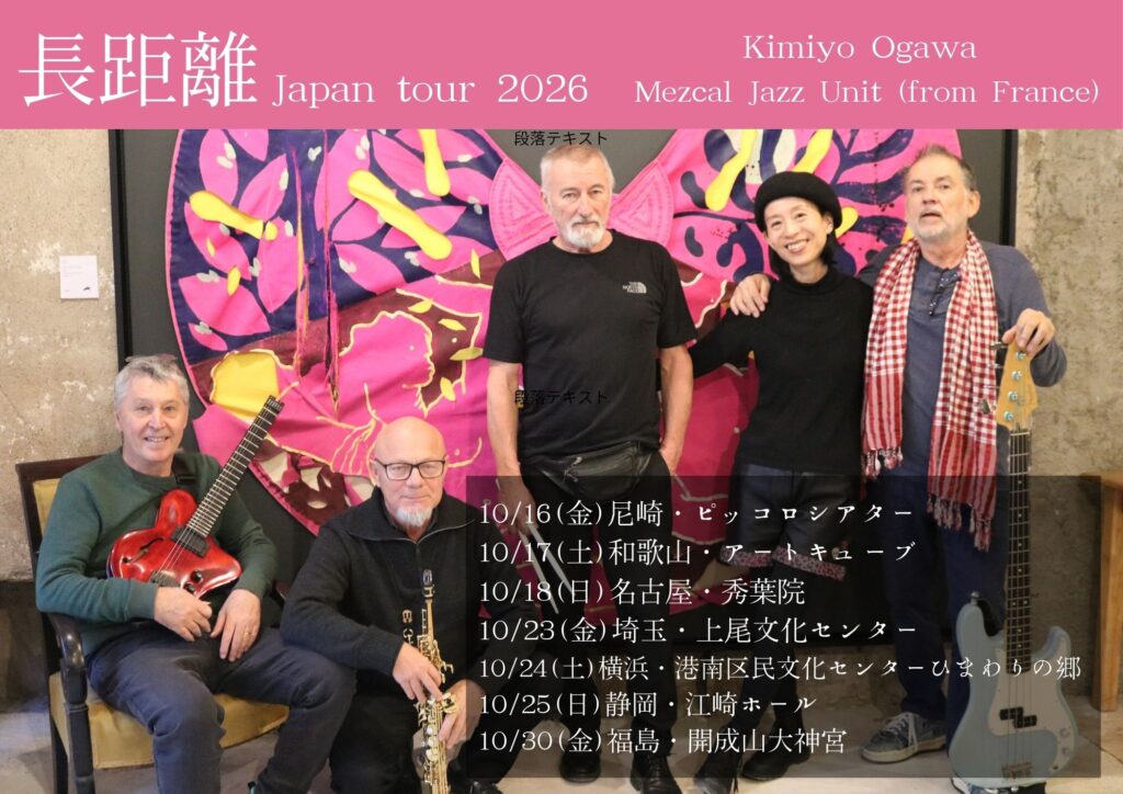 バンドネオン奏者・小川紀美代と世界を旅するバンド・Mezcal Jazz Unit、フランスから奇跡の再来日ツアー。