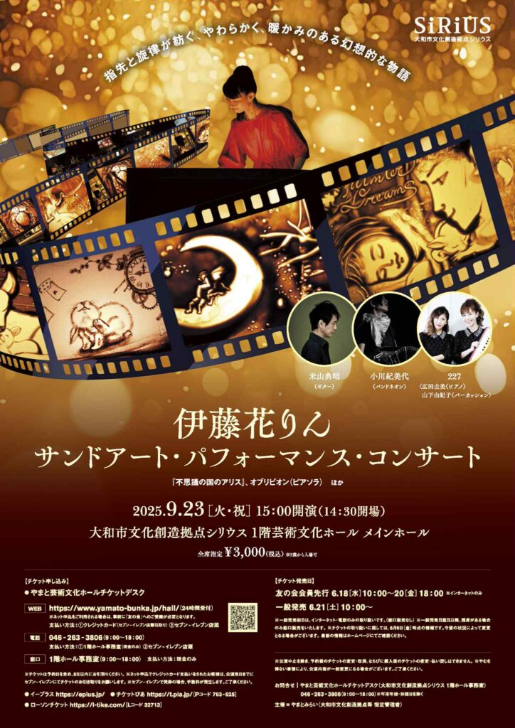 9/23(火・祝)大和市文化創造拠点シリウスメインホールにて、サンドアートのコンサートに出演します。