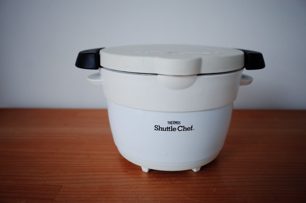 今までは車中で一食ずつちいさな電磁器具で調理していたが、今回は愛用しているシャトルシェフとガスコンロを持参したい。というわけで、このセットのみで何ができるかを目下研究中!!