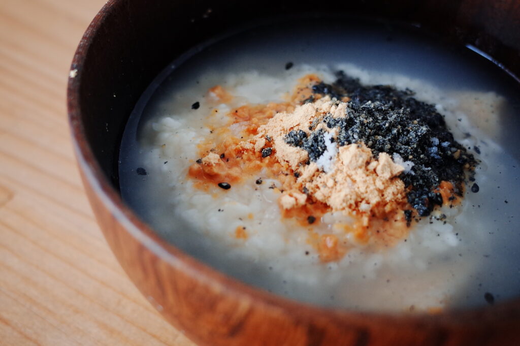 最近のヒットは「玄米餅」。沸騰したら5分保温するだけで柔らかくなる。そこに味噌を入れたり、きな粉や胡麻をかけたりするとすごくおいしい。