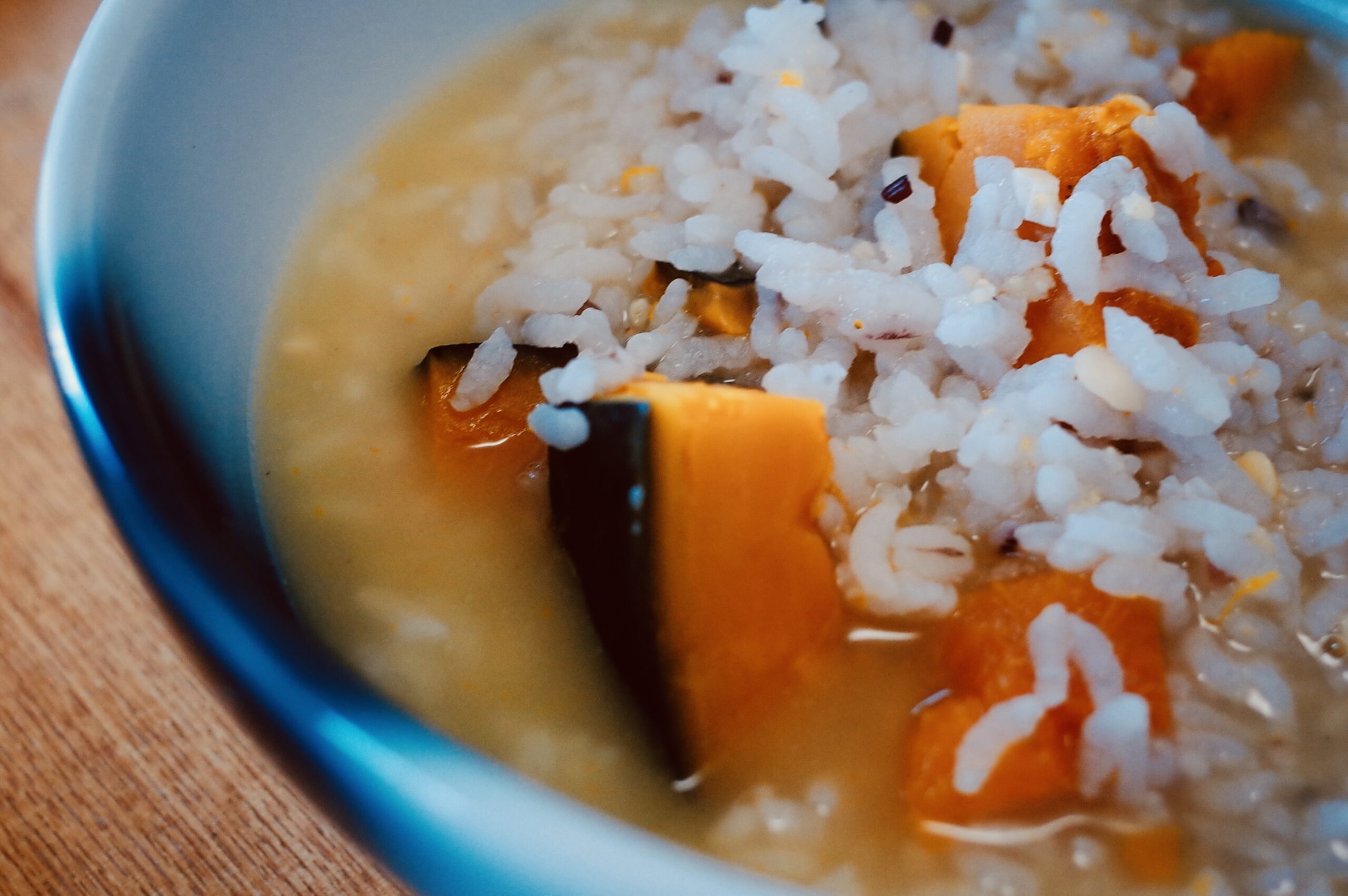 今朝も、昨日の残りのかぼちゃの蒸したのと冷やご飯であったかいお粥があっという間にできた。おいしかった!