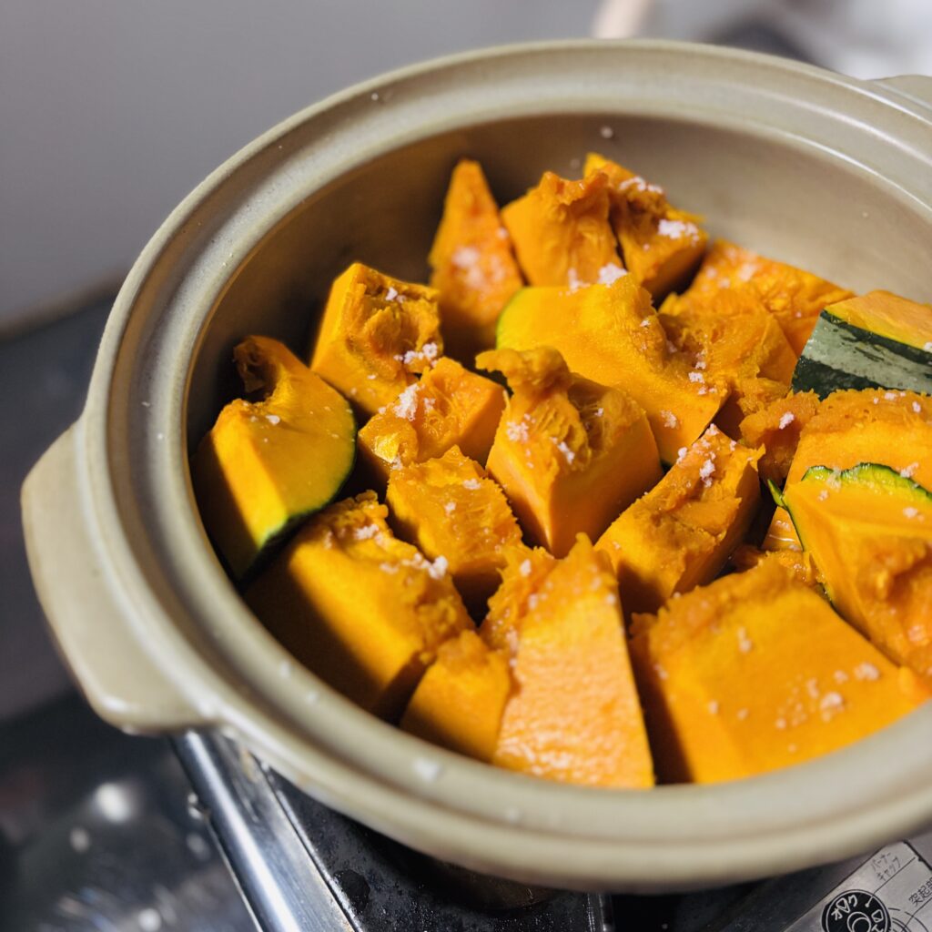 バタバタしながらもルーティンとなった甘酒を作り笑、カボチャを蒸す。こういうのがあると、いいんです!