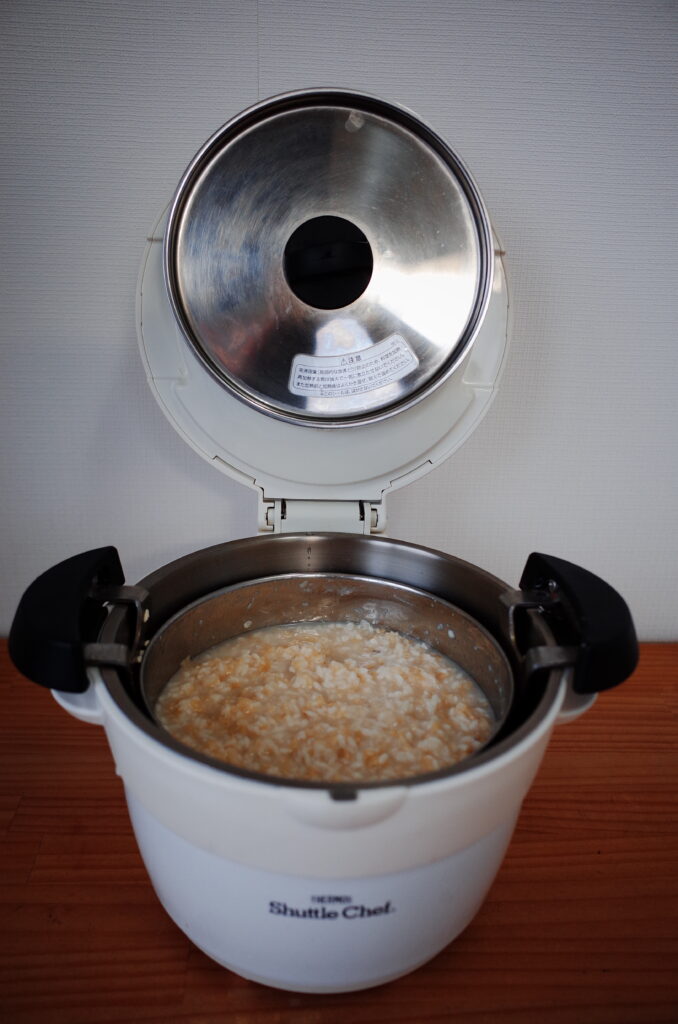 沸騰させて保温鍋に入れておくだけで優しく温度をキープしてくれるので、実はとても美味しく調理ができる。
