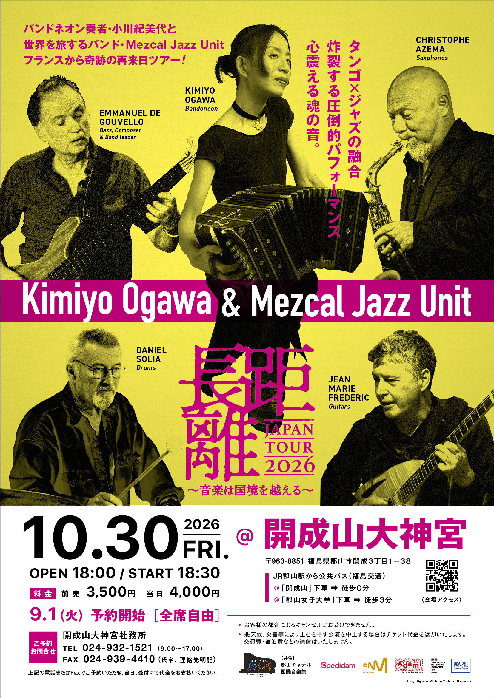 世界を旅するバンドネオン奏者・小川紀美代とMezcal Jazz Unit、フランス公演を経ての待望の再来日ツアー!